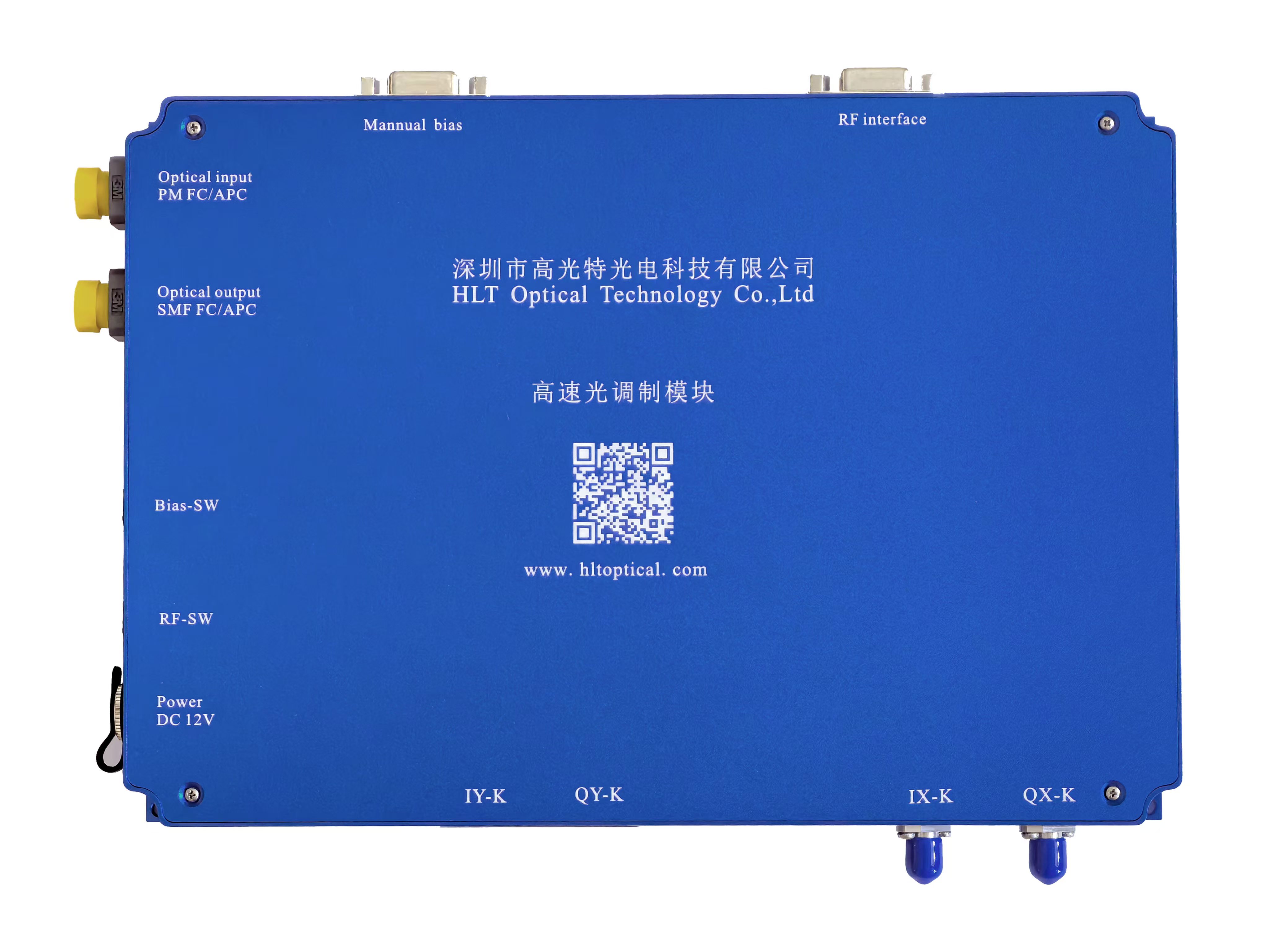 The 40G IQ optical transmitter module comprises LiNbO3 QPSK Dual-Drive Mach-Zehnder modulator ,Dual Input 28Gb/s Broadband 8V Lithium Niobate Modulator Driver amplifier and bias controller. It greatly increases the operability of experiment. Model is well available on customer’s special request.